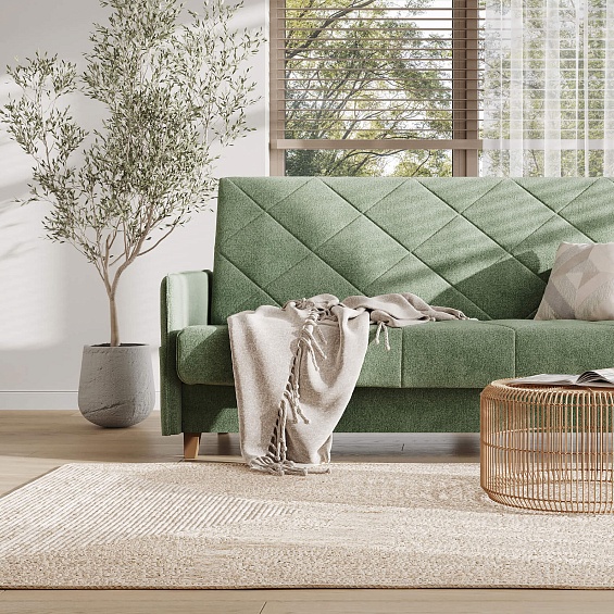 Диван очень понравился! Упругий, высокий и достаточно компактный за счёт узких подлокотников. Я маленького роста, поэтому глубина сиденья для меня великовата. Поняла это, потестировав диван в салоне, и сразу решила купить вместе с диваном несколько дополнительных подушек. С ними вообще полный кайф!