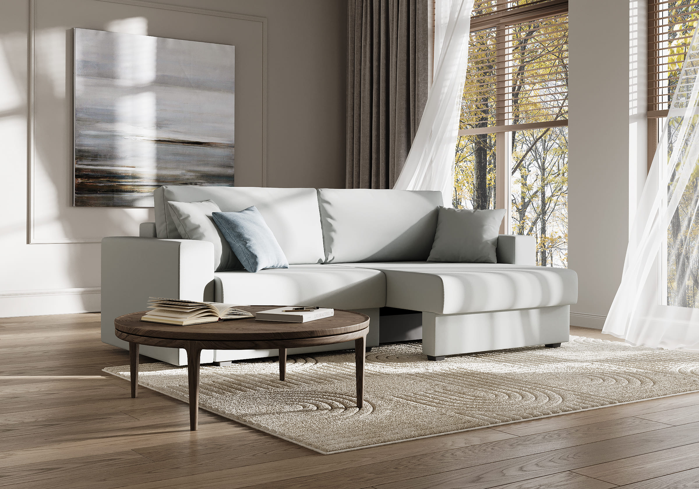Отсутствие декора, лаконичный дизайн позволяют дивану органично вписаться в современные интерьеры.