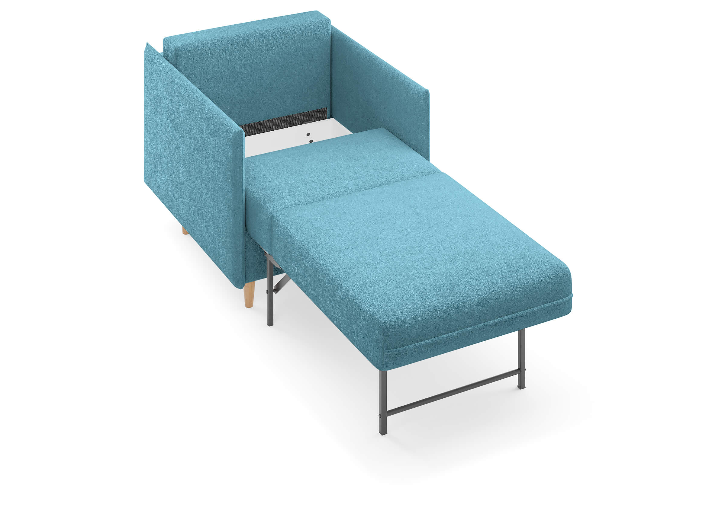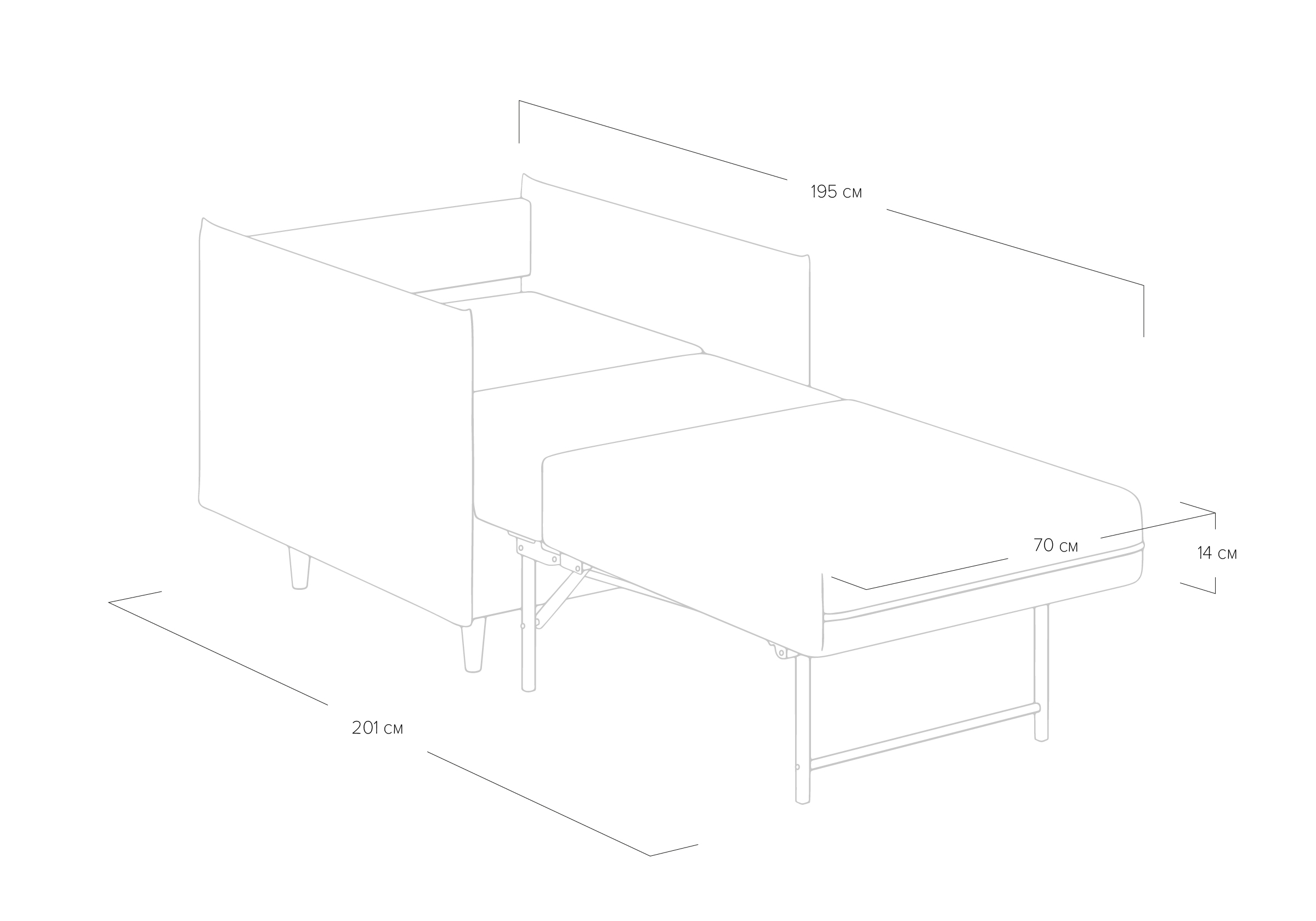 Идеальный выбор для тех, кто ценит эстетику и функциональность в равной степени. Его лаконичный дизайн гармонично впишется в любой современный интерьер — как в минимализм, так и в скандинавский стиль. Благодаря трёхсекционному механизму трансформации (МТД), кресло легко превращается в полноценное спальное место. Узкие подлокотники не занимают лишнего пространства, позволяя креслу легко вписаться даже в небольшие комнаты. Высокие опоры придают изделию лёгкость и изящество, облегчая уборку и позволяя роботу-пылесосу беспрепятственно двигаться под ним.
