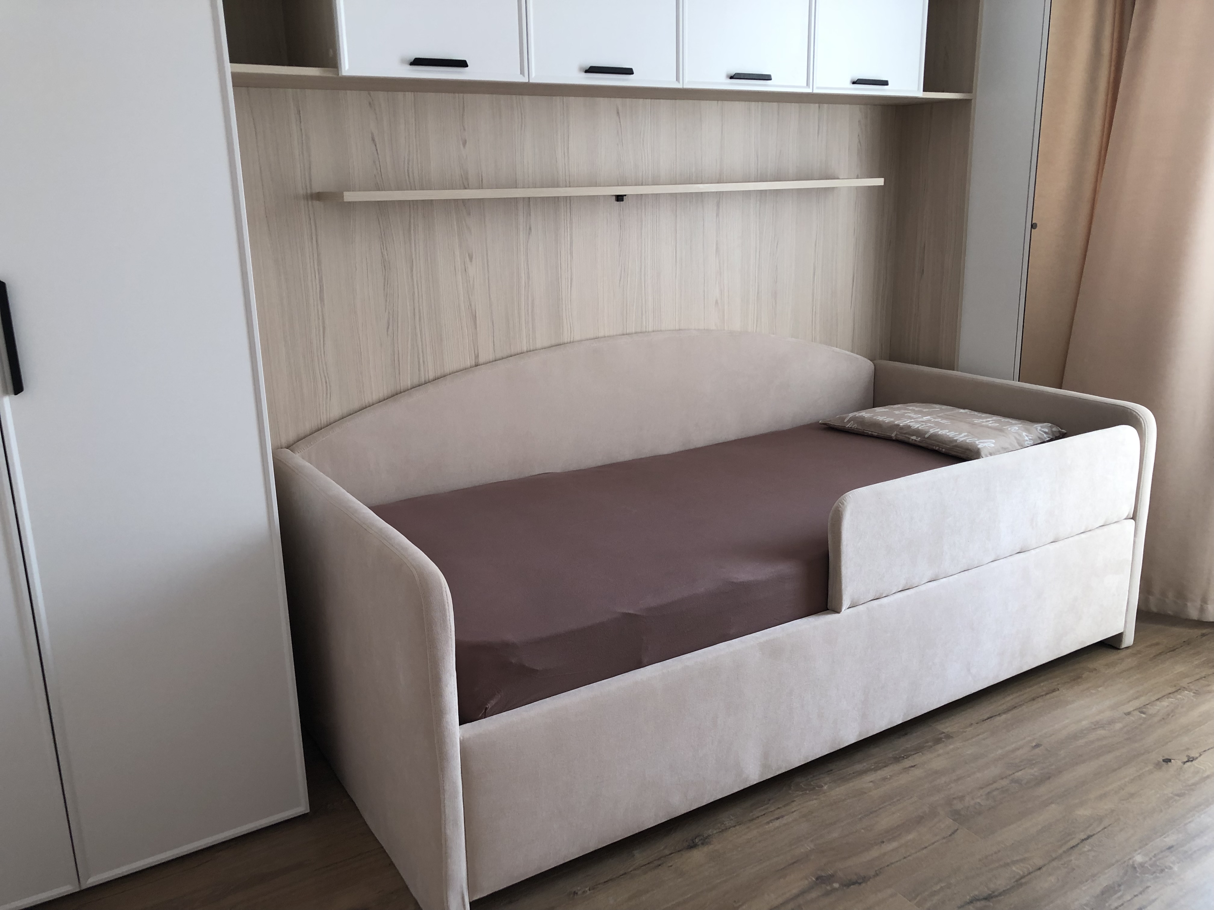 Эта детская кровать стала настоящим украшением комнаты нашего ребенка! Мы выбрали вариант с подъемным механизмом, и теперь у нас появилось много дополнительного пространства для хранения игрушек и вещей!