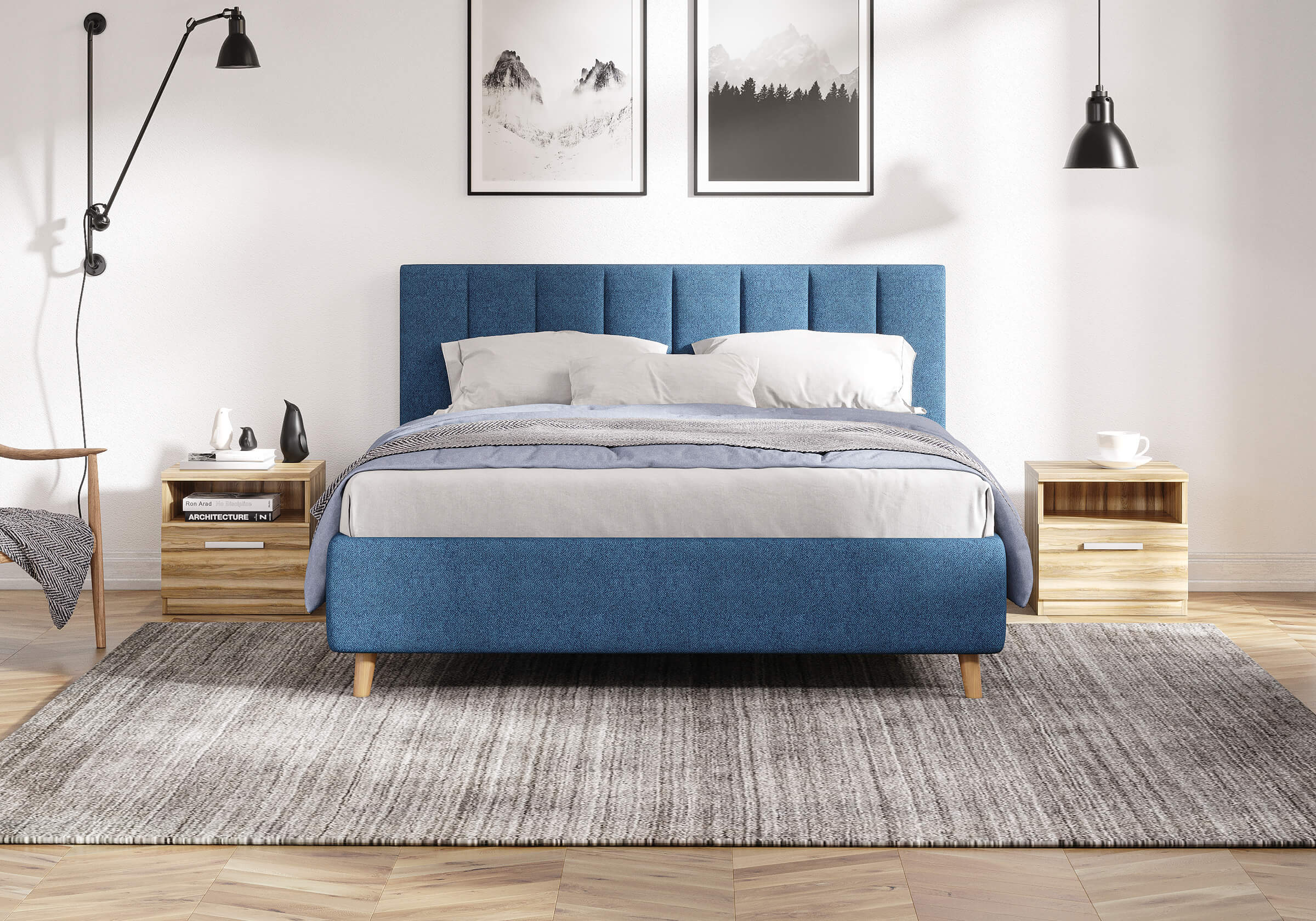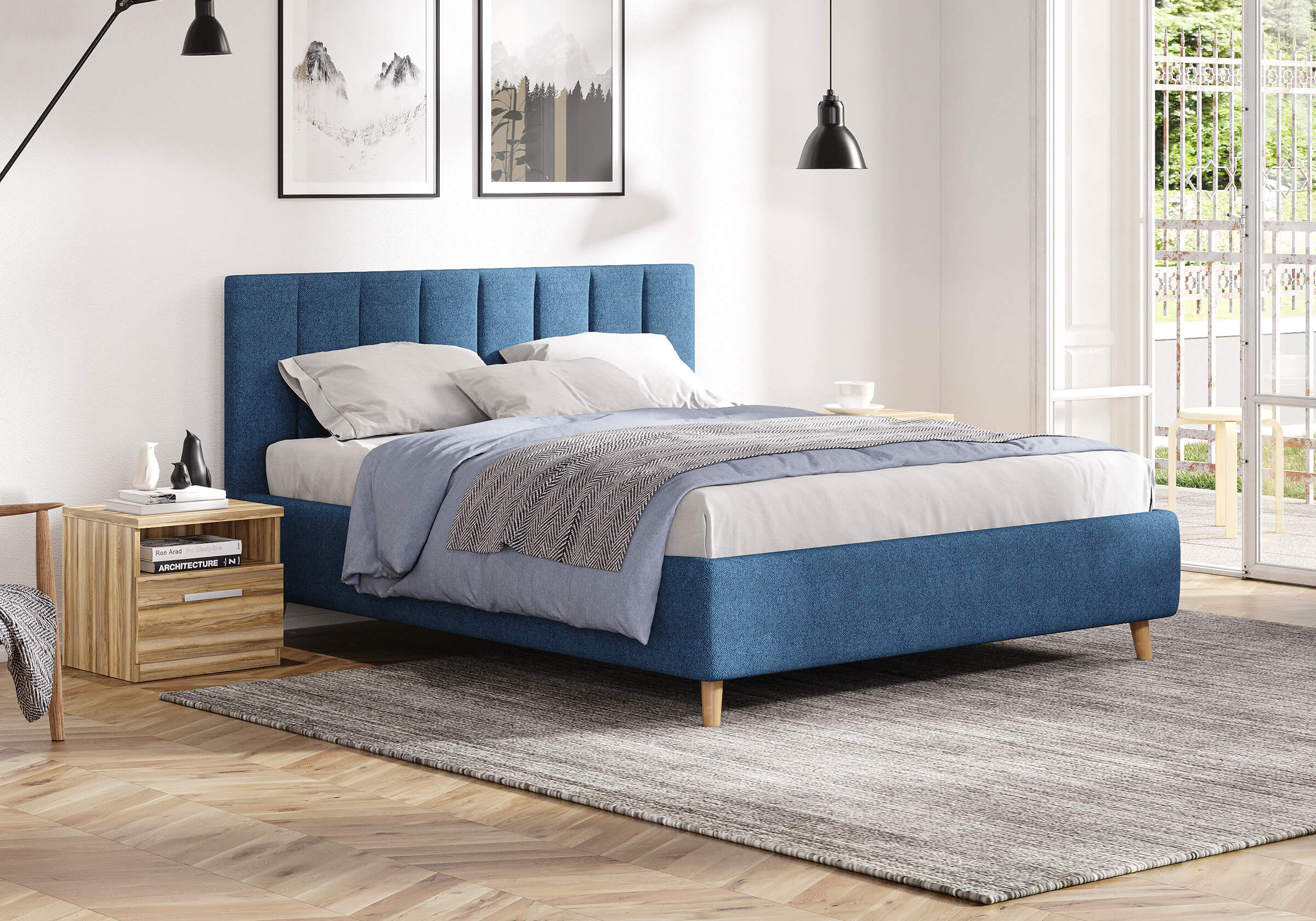 Кровать Alma подойдет для современных интерьеров спален, а благодаря деревянным ножкам впишется в стиль ретро, скандинавский или минимализм. При необходимости кровать может быть укомплектована разборным или неразборным металлическим основанием с ламелями, подъемным механизмом с бельевым ящиком.