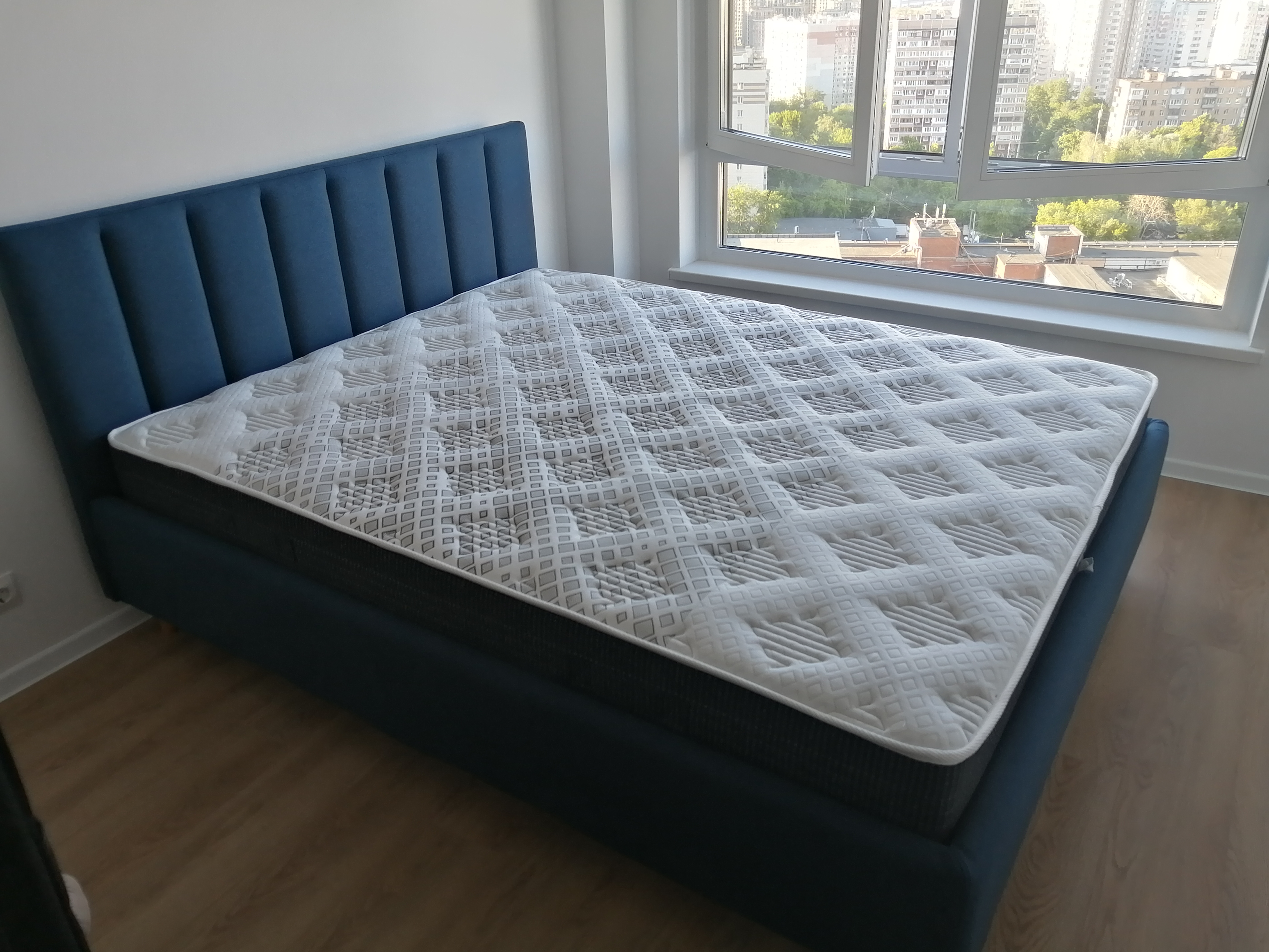 Матрас – удобный, средней жесткости, не очень дорогой, сделали на него даже скидку. Кровать – супер, ткань как и выбирали, в живую даже лучше выглядит, очищается хорошо. Всё стильно, красиво. Сотрудники помогают с выбором и предлагают выгодные предложения. По цене у нас вышло на всё около ~73к. Доставка в срок. Рекомендую!