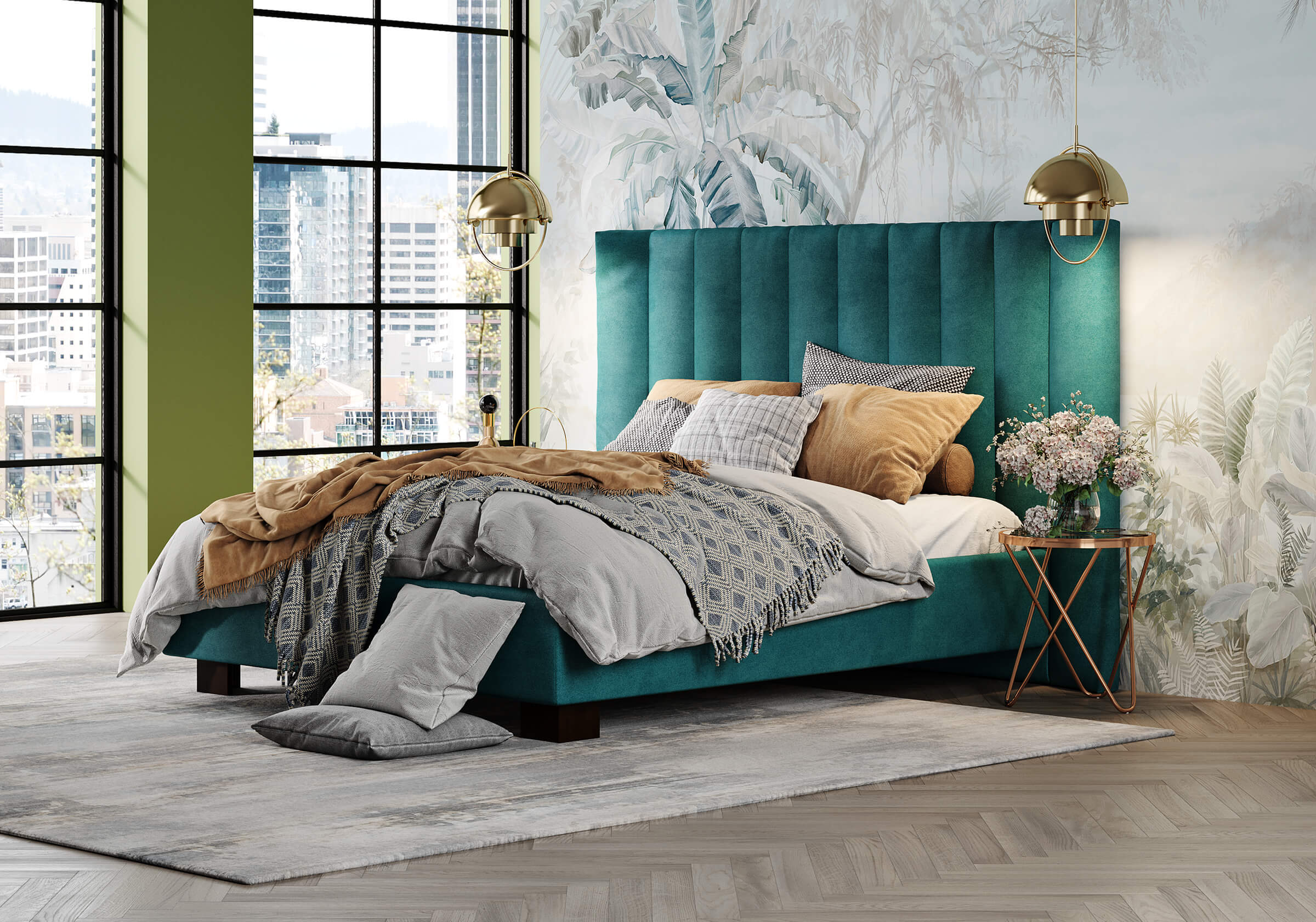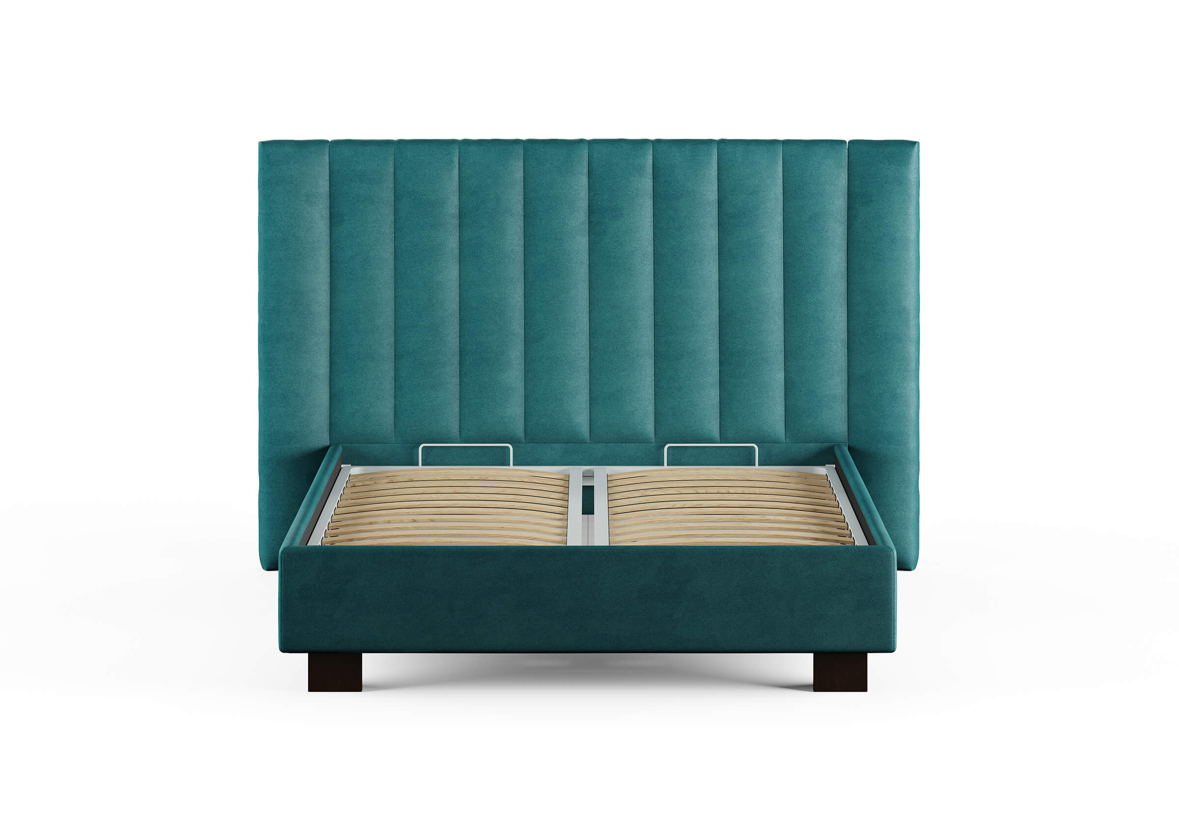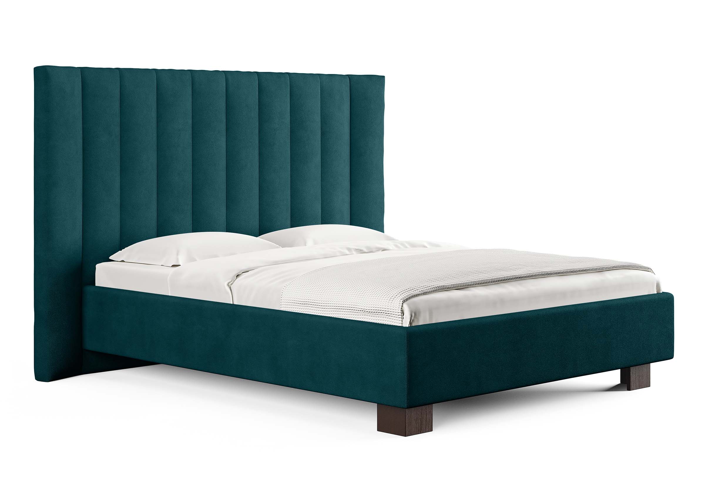 Кровать соответствует самым модным тенденциям и прекрасно впишется в современный интерьер просторной спальни. Высокая спинка с мягкими элементами выглядит эффектно. Поворотный механизм боковых элементов изголовья меняет форму, создавая более уютную атмосферу в спальне. Увеличенная прочность кровати достигается за счет металлического каркаса по периметру. Массивные ножки, выполнены из бука цвета венге. Расстояние от пола до царг способствует легкой уборке под кроватью, в том числе роботом – пылесосом. Модель укомплектована ортопедическим основанием, при желании возможно установить подъемный механизм с бельевым коробом либо трансформируемое основание Aquarius.