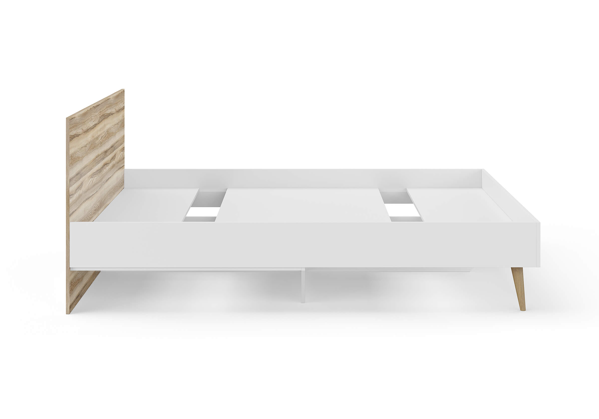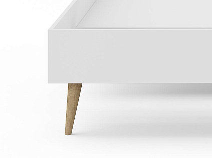 Кровать Ines оригинальное решение для спальни в скандинавском стиле. Благодаря деревянным ножкам кровать смотрится легкой и воздушной. В качестве основания используется настил из ЛДСП. Система усиленных средней и центральной царг позволяют выдерживать высокие нагрузки. Большое расстояние от пола до царги облегчает уборку под кроватью, делает доступной использование робота-пылесоса. Кровать можно укомплектовать ящиками для хранения вещей (приобретаются дополнительно).