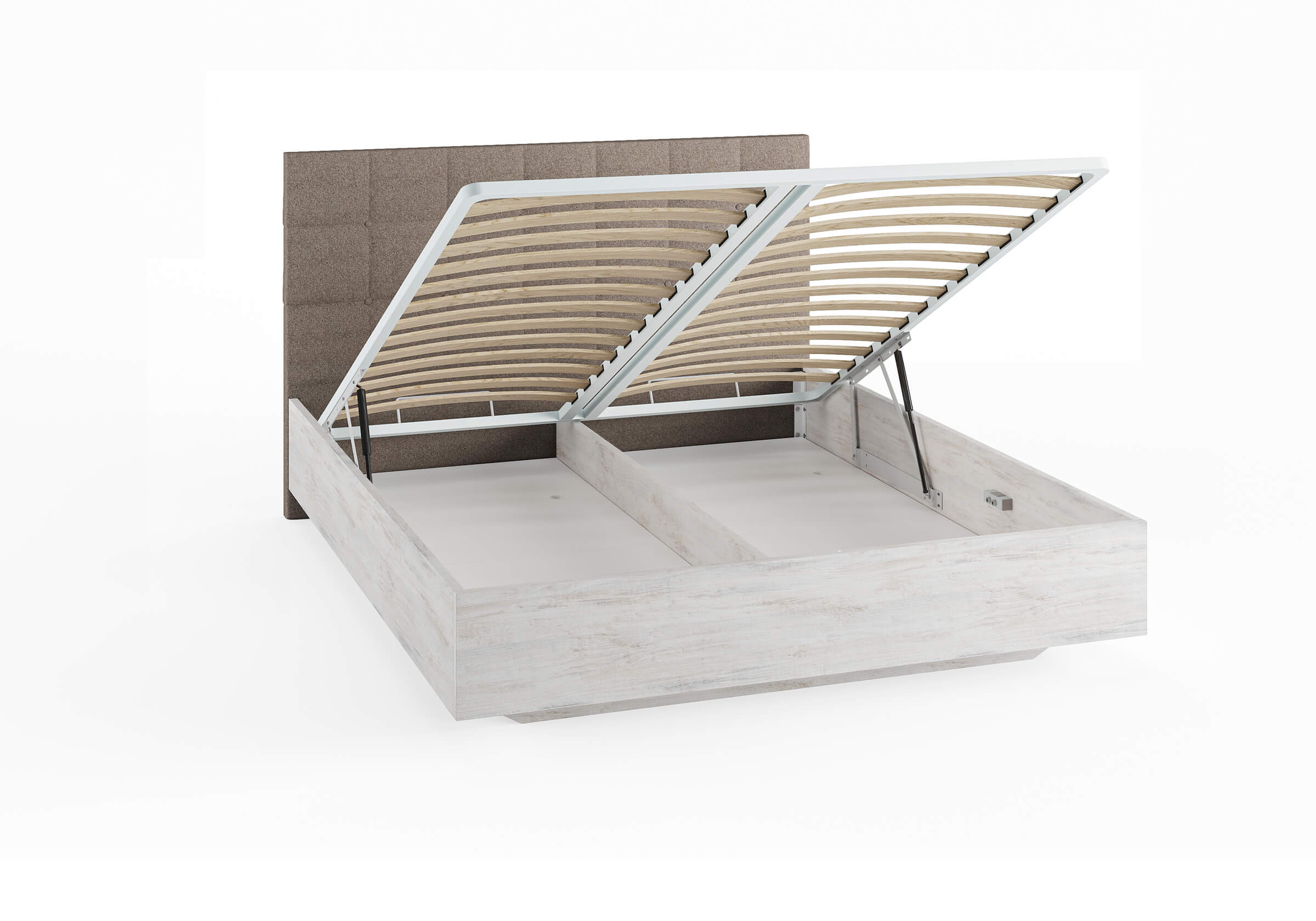 Возможность установки подъемного механизма со вместительным бельевым коробом, 13 см глубиной. Дно бельевого ящика легко сдвигается, что позволяет просто убраться под кроватью.