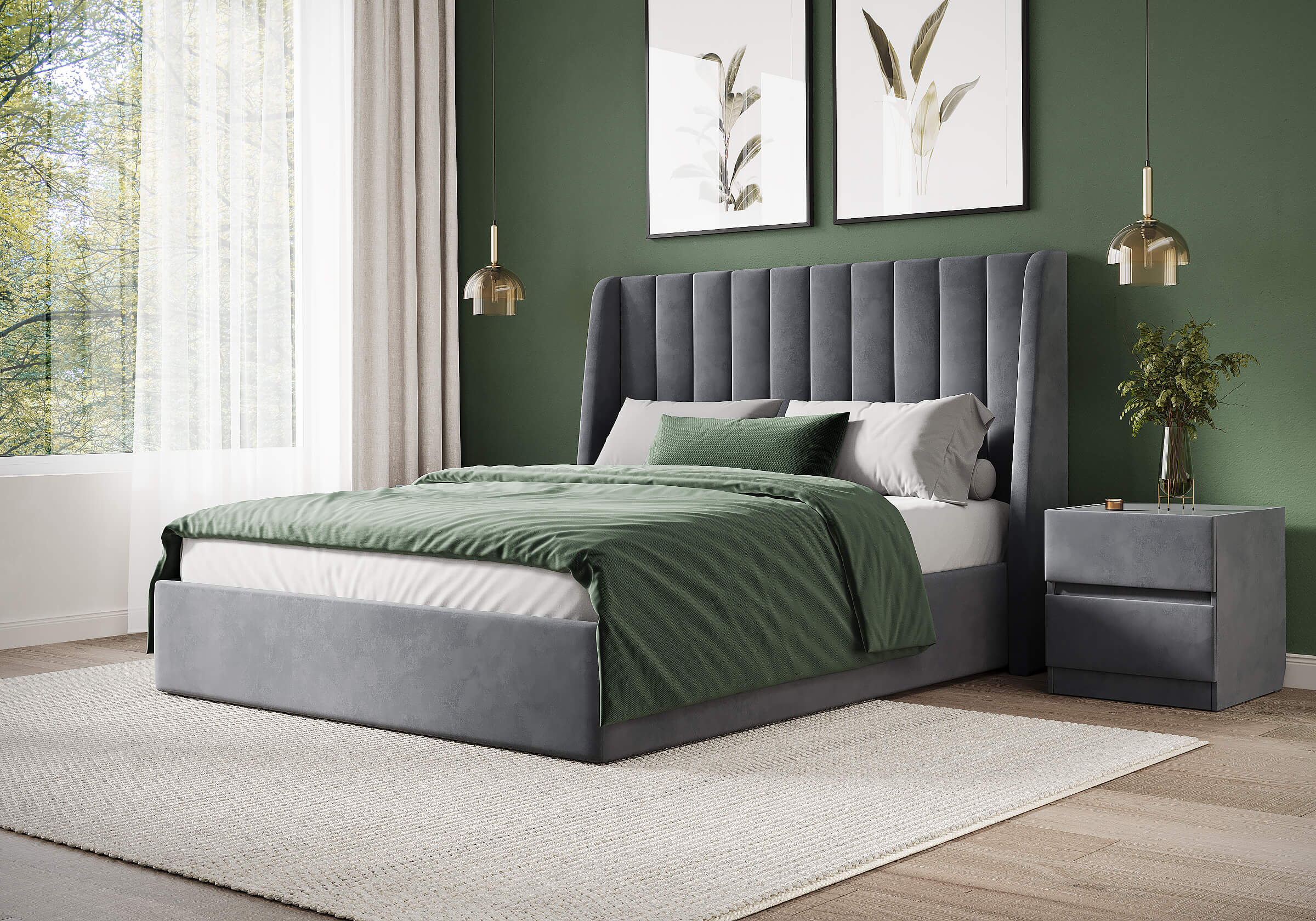Низкие царги кровати создают ощущение расположения кровати на полу помещения, придают эффектную строгость.