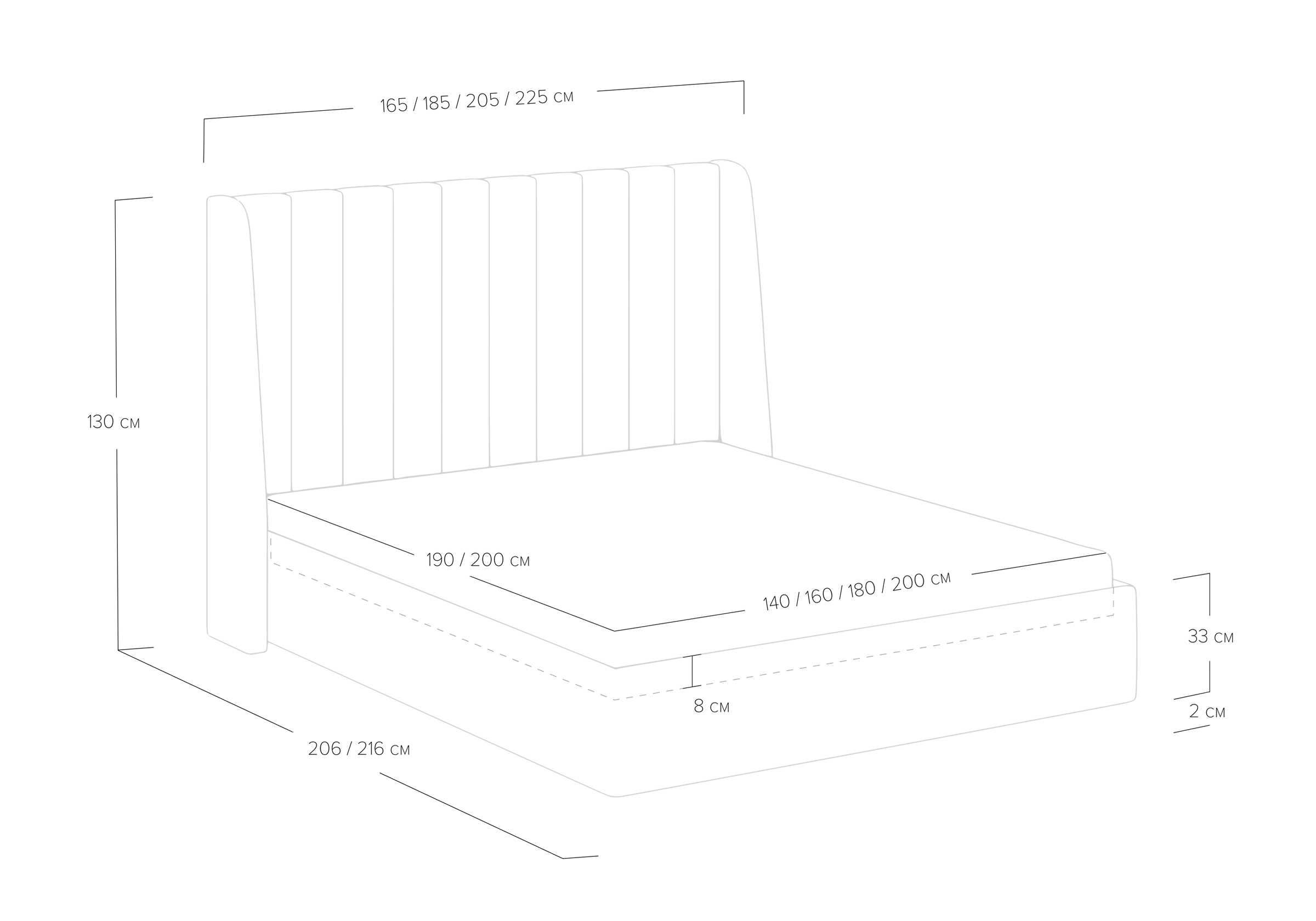 Металлическое основание имеет 13 рядов встроенных березовых ламелий на каждое спальное место, обеспечивая равномерное распределение нагрузки.