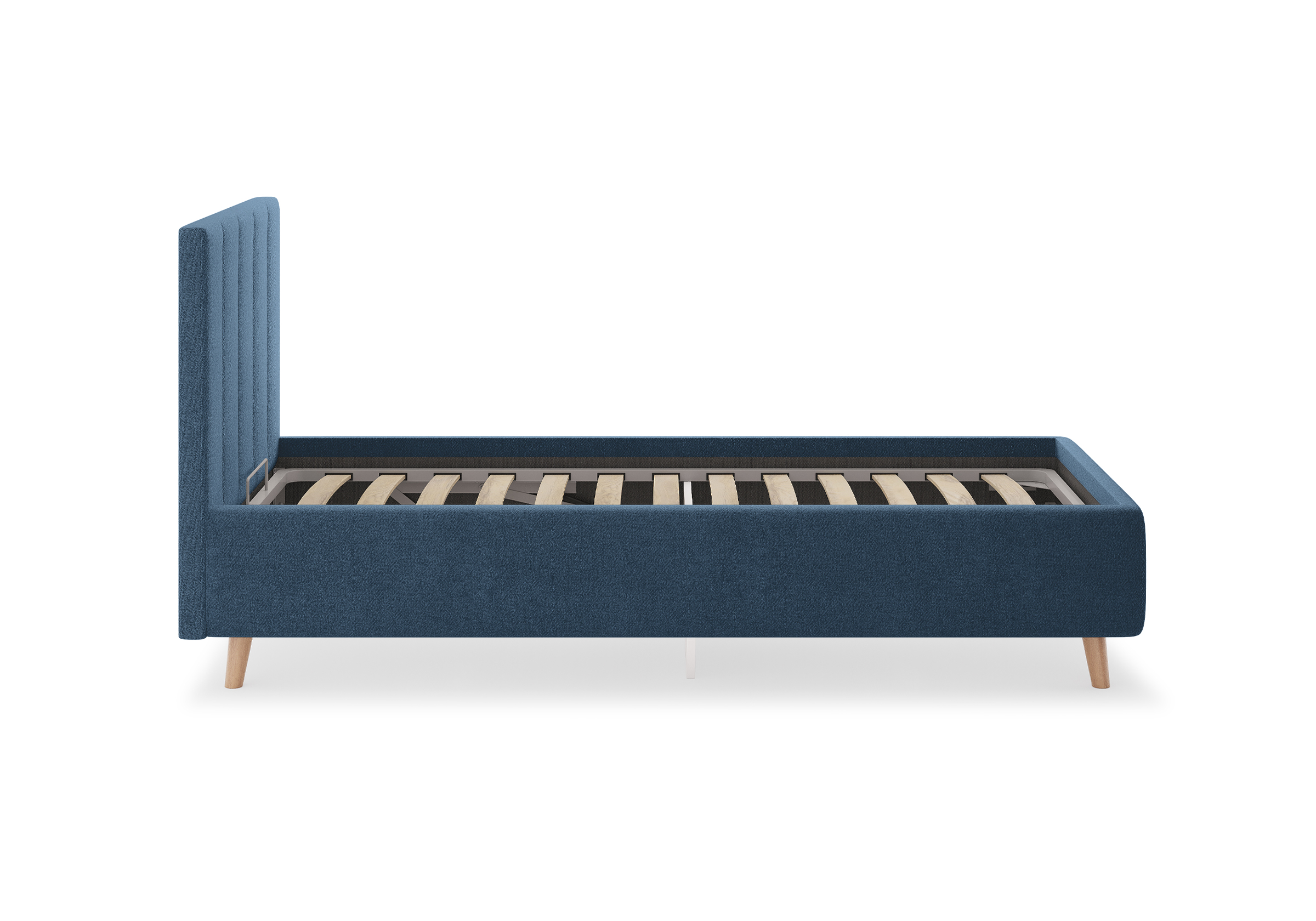 Основание кровати на деревянных ножках. Благодаря увеличенной высоте позволяют осуществлять легкую уборку под кроватью, даже с помощью робота-пылесоса.