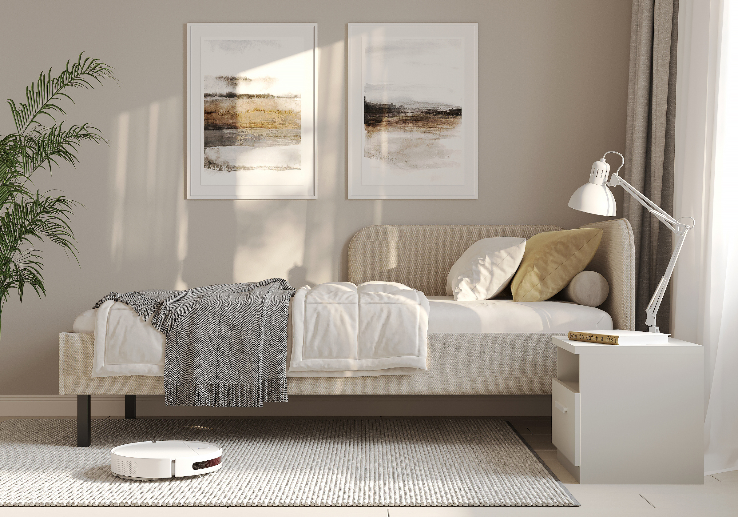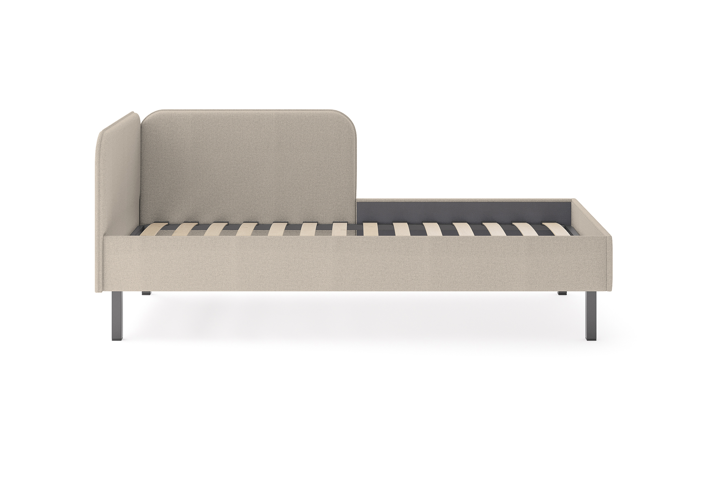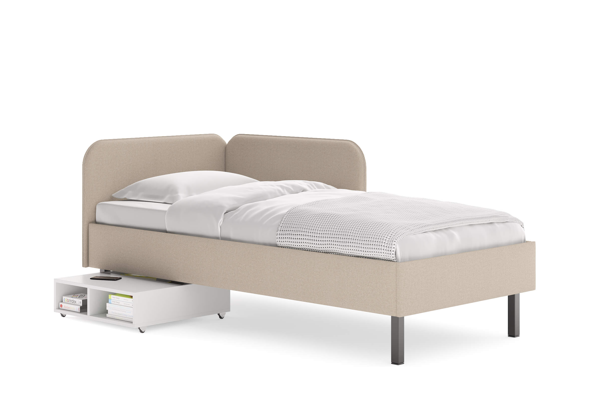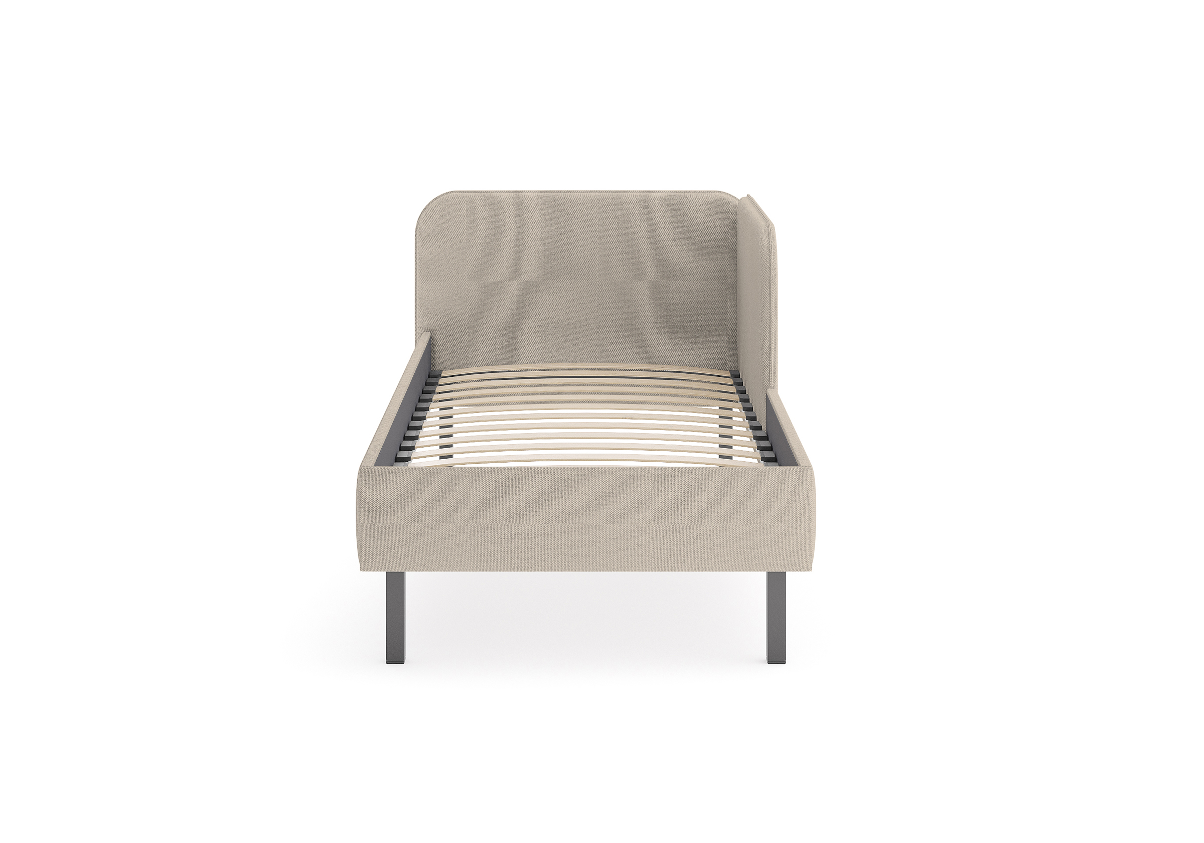 Основание кровати на высоких металлических ножках. Благодаря увеличенной высоте позволяют осуществлять легкую уборку под кроватью, даже с помощью робота-пылесоса.