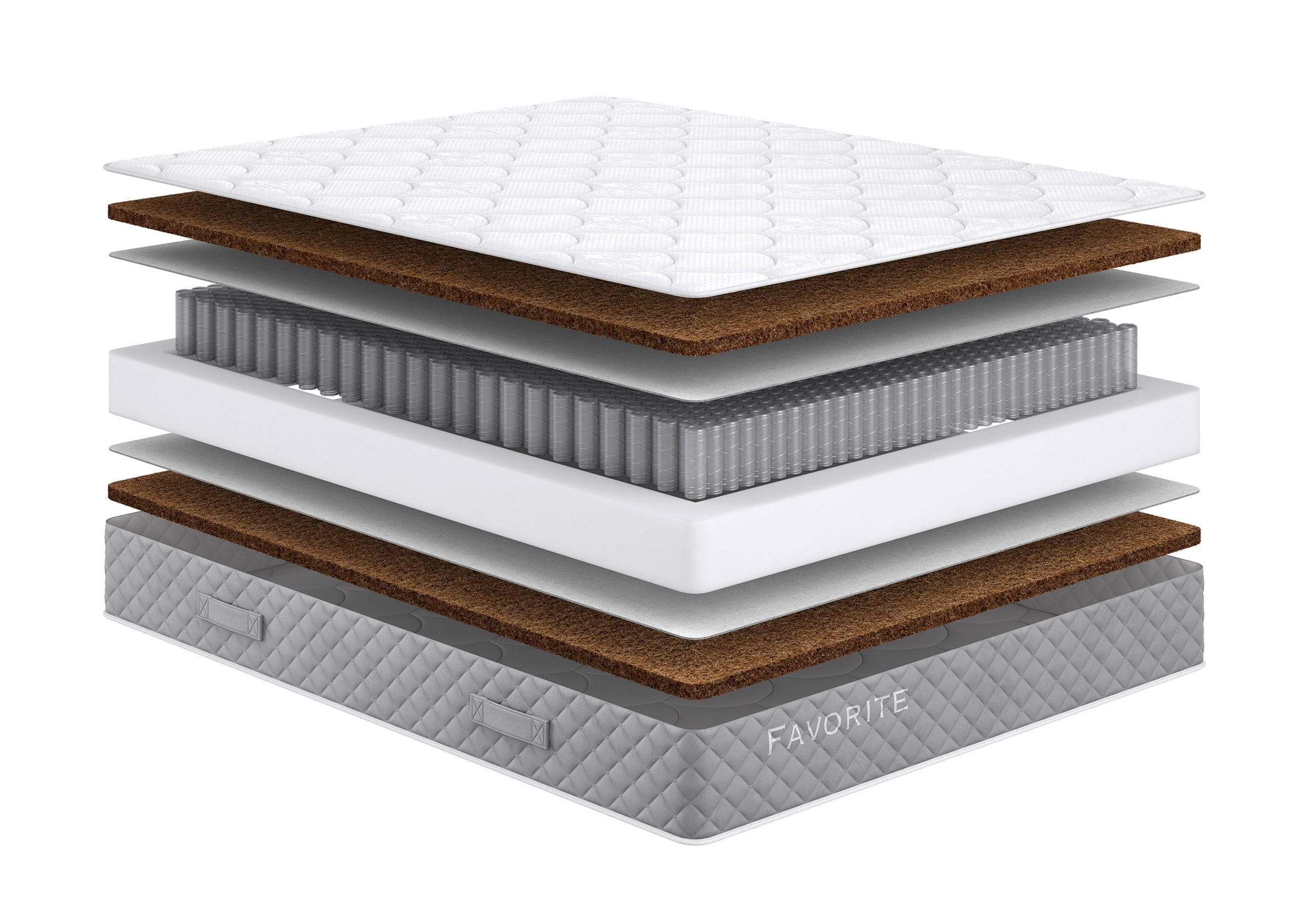 Природный натуральный материал. Состоит из волокон ореха кокосовой пальмы, пропитанных составом из натурального латекса. Гипоалергенен, обеспечивает циркуляцию воздуха и теплообмен.
