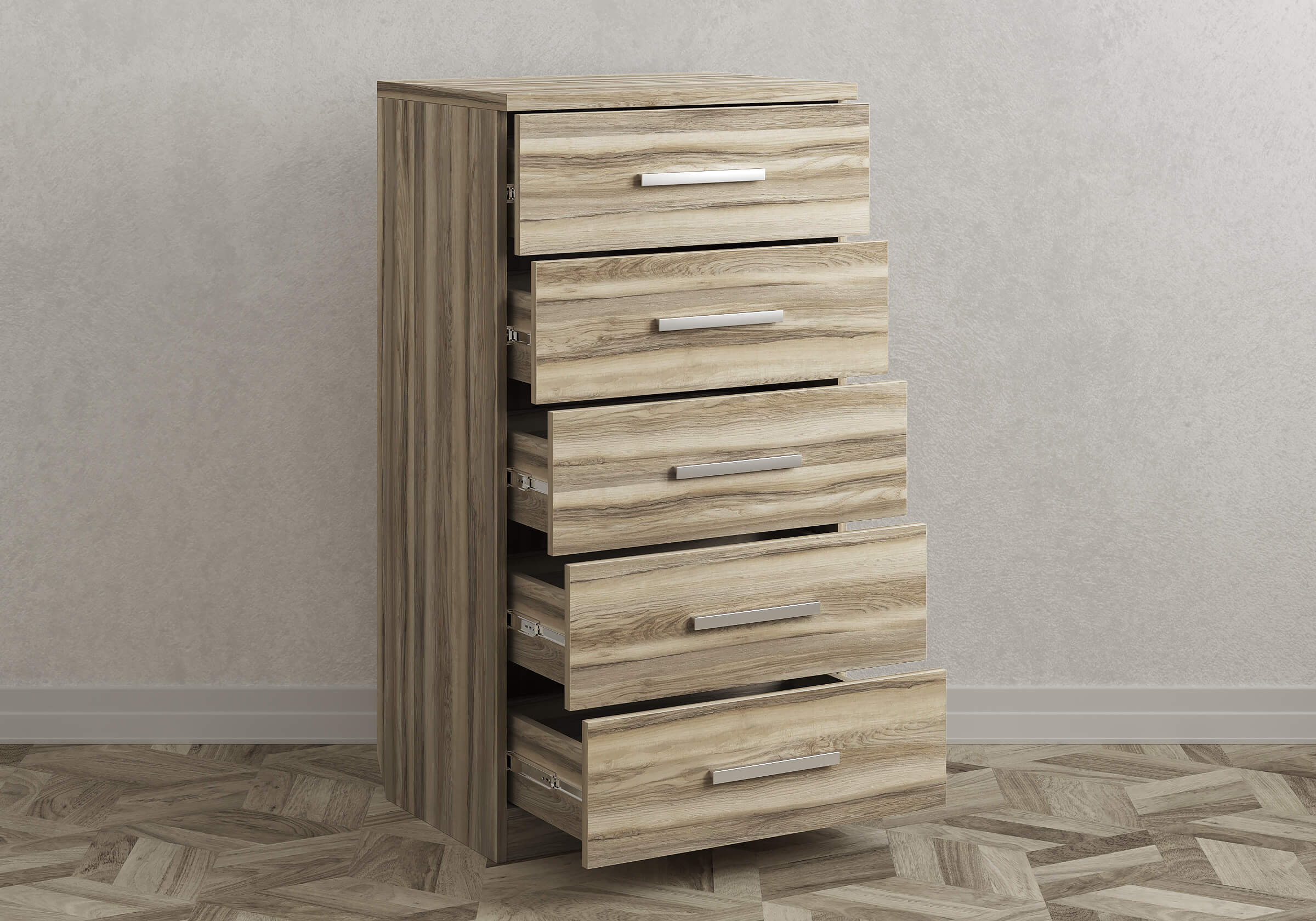 Комод Авангард - лаконичное и функциональное решение для интерьера в современном стиле и стиле минимализм. Он является идеальным дополнением к тумбам Авангард 1 и Авангард 2, комбинированным кроватям и кроватям из ЛДСП. Комод подойдет для просторных и небольших помещений. Фасады выдвижных ящиков с металлическими ручками, верхняя столешница из ЛДСП увеличенной толщины. Пять выдвижных ящиков оснащены надёжными направляющими, обеспечивающими лёгкое открытие. У комодов предусмотрен скос под плинтус, благодаря которому зазор между стеной и комодом будет минимальным. Многообразие цветовых решений позволяет легко вписать модель в готовый интерьер.