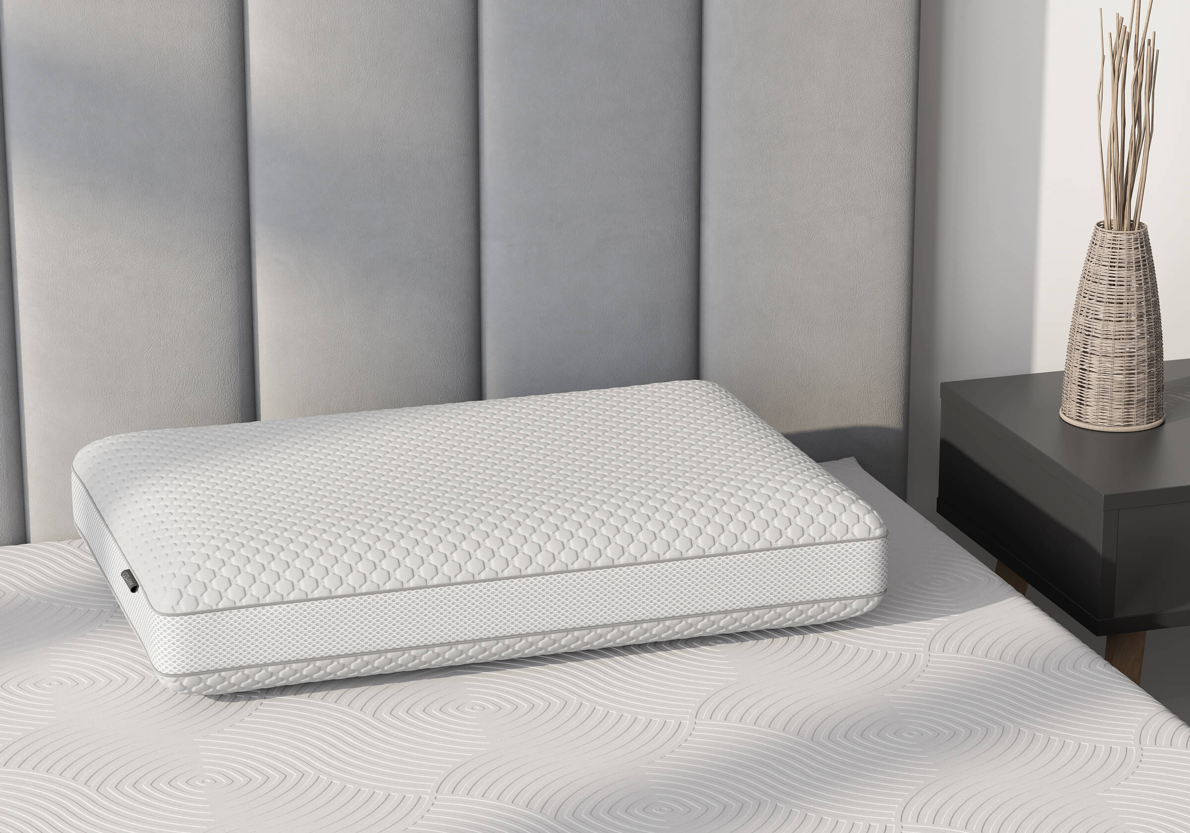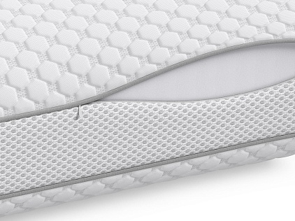 Подушка из пены с эффектом памяти NeoTaktile. Принимает форму головы и идеально поддерживает шейный отдел позвоночника. За счет гранул охлаждающего геля, подушка из пены обладают эффектом терморегуляции, а так же пропускает и охлаждает воздух.